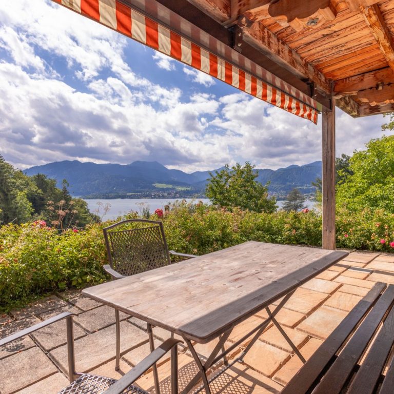 Von hier aus genießen Sie den Blick Richtung See und Berge. Der Holzofen sorgt an kühleren Tagen für eine besonders behagliche Atmosphäre.
